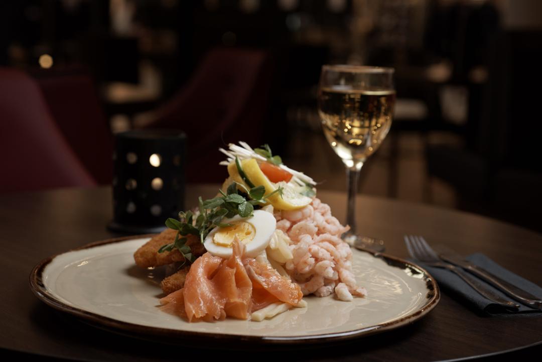 Her serveres brunch, frokost og aftenmenu, og har en stor lækker bland-selv salatbar.